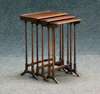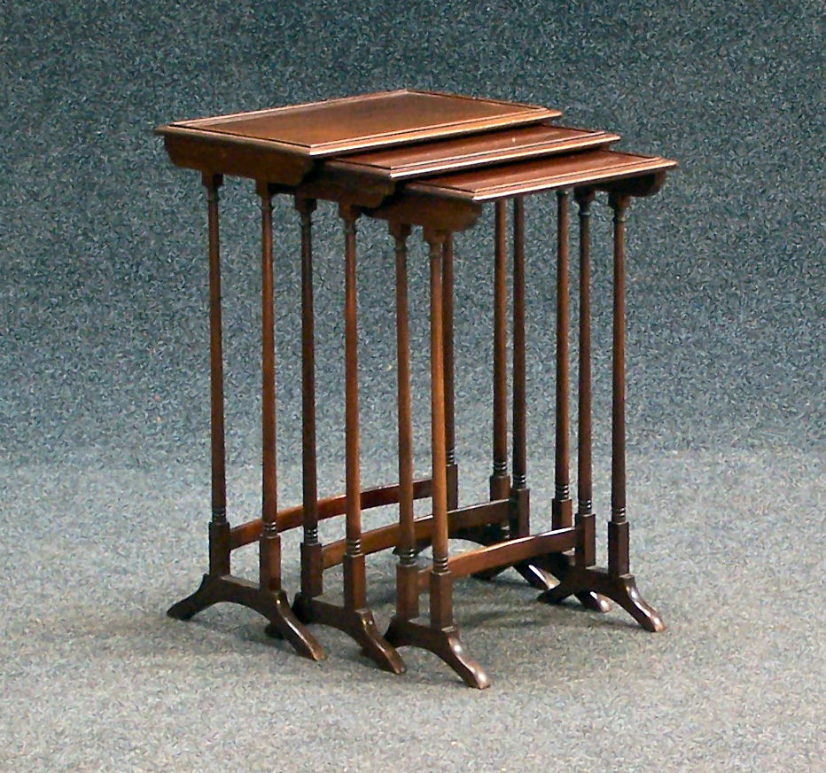 each with a moulded gallery, on block and turned supports with splayed legs, united by a stretcher, "John Taylor and Son Edinburgh. E9155" (3)