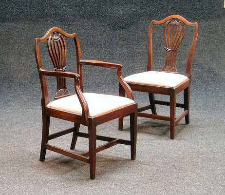 A set of twelve (six and six) mahogany Hepplewhite style dining chairs,