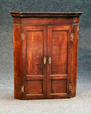 A 18th century oak corner cupboard,