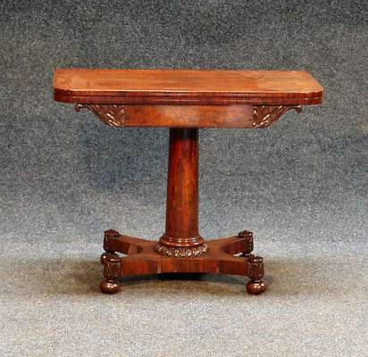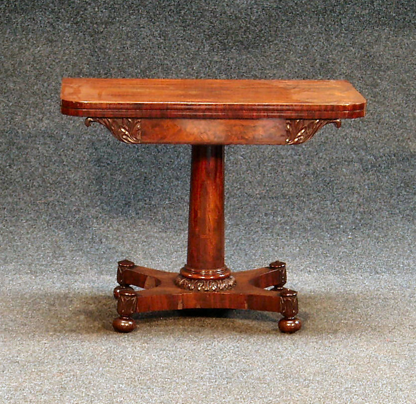 the rectangular top over a plain frieze panel flanked by carved acanthus, on tapering column with X-frame and carved terminals on bun feet