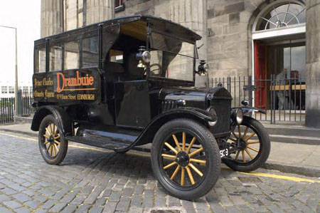 Another Fife registered 4 cylinder T used in the Hackney trade and dating from c1922. This is an unusual model with a rear compartment with face-to-face bench seats for six (or eight). Its side window panels can be slid out to provide for open-sided summer tours (although these are currently painted in). It has a rear entrance with single step (loose) and sports its original 'HACKNEY CARRIAGE' rear plate. Typical of an early 20s bus the vehicle is fitted with side oil lamps in addition to electric head and wing lamps. The engine is fitted with an oversize radiator to handle the heavy loading that was intended for the vehicle, and although not run for many years the engine turns over freely from the crank handle. Professionally refinished in all-black with varnished wood wheel spokes, it seems to have much of its original rexine trim, although this is thinly overpainted. It has been dry stored since it was restored and is in very sound structural order, being displayed at Alford Motor Museum until being offered for sale. It is fitted with detachable sign-written 'Drambuie' side panels. An attractive detail is the dashboard mounted suppliers plate for 'H K Brown - Motor Engineers - Kirkaldy'. It comes with a spare cylinder head and a set of axle blocks.