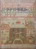 the alphabet and a geometric design to the top half, the bottom half depicting a scene of a school, a garden and a crown