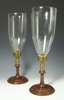 each with tapering glass shades above brass nozzles, turned wood uprights with spreading bases (2)