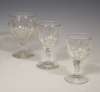 each with bulbous panelled bowl, faceted stem and plain circular foot, of three graduated sizes, together with three matched glasses (71)