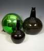 inscribed SULPH:ACID., with painted label LIN:SAPON:, 32cm high; together with a small onion shaped wine bottle, 21cm; and a large green glass witches' ball (3)