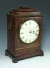the stepped top above a brass inlaid front enclosing a painted dial (damaged) inscribed 'Thomas London', on stepped base with gadrooned disc feet