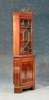 the swan-neck pediment over projecting dentil cornice with canted corners, boxwood strung frieze panel, astragal glazed door, enclosing shelves, raised on a stepped base, with feathered mahogany cupboard on bracket feet