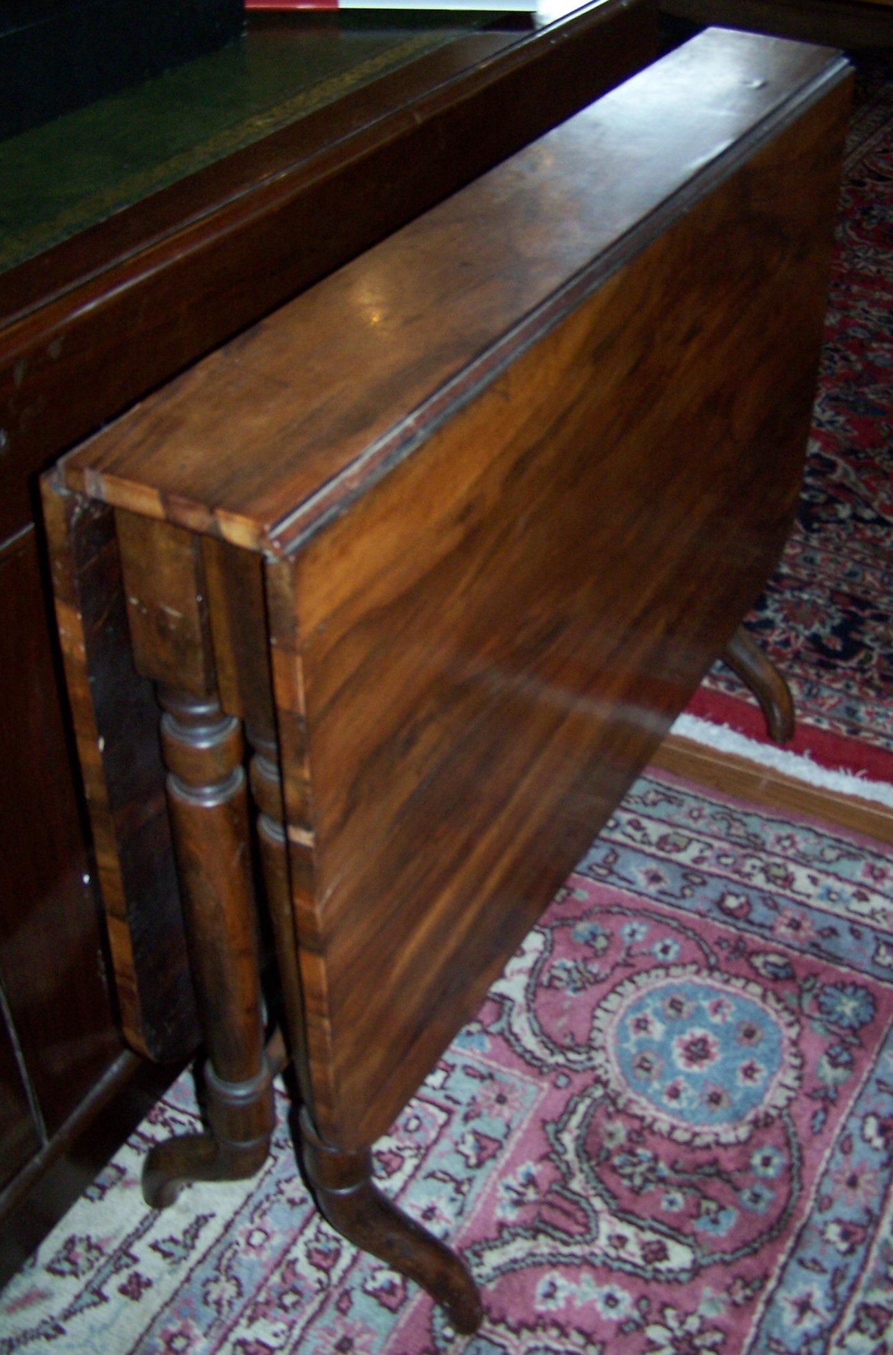 of narrow proportions, the rounded rectangular top above turned and splayed gate action legs united by turned stretchers and an undertier