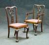 possibly Irish, the carved serpentine top rail over interlaced foliate carved vertical slats, drop-in seat, on acanthus topped cabriole claw and ball legs; including two carvers (8)