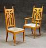 A set of seven oak Arts and Crafts tall back dining chairs †