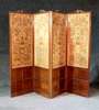 the foliate carved top rail over a three quarter damask panel, four solid panels