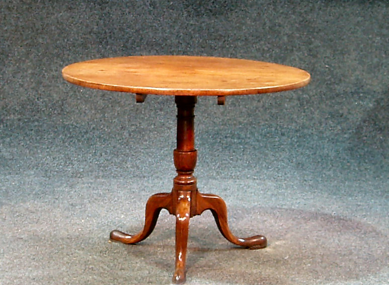 the round top on vase turned support, cabriole tripod legs with pad feet