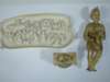depicting farming and family scenes, 17.5cm; together with a carved figure of a fisherman and his catch, 16cm high (2)
