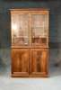 the projected moulded cornice over two glazed doors, enclosing adjustable shelves, two feathered mahogany paneled doors, on plinth base
