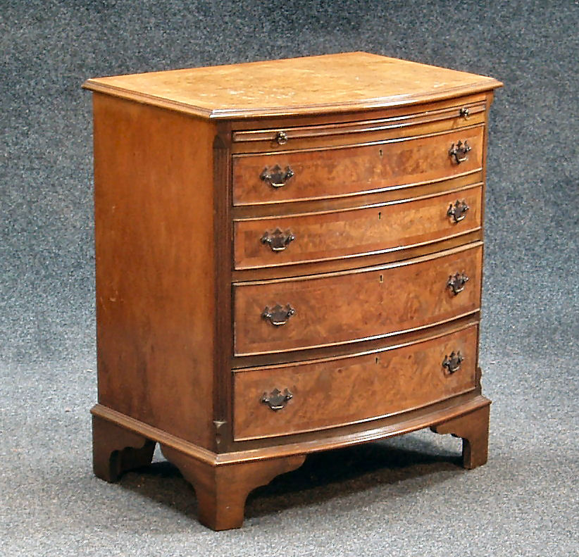 the moulded top over brush slide, four cock-beaded long drawers, raised on bracket feet