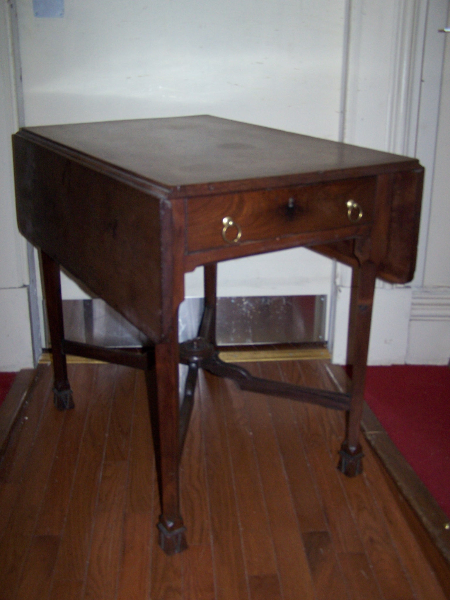 the rectangular top over a single frieze drawer on square chamfered legs, united by stretchers