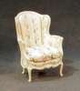 the foliate carved frame over cushioned back and loose cushioned seat, shaped apron with carved swags, on cabriole legs terminating in C scrolls