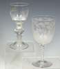 the bowl engraved with running fox and Linlithgow & Stirlingshire, above a knopped stem containing air bubble on domed stepped foot, 18.5cm high; together with another glass goblet engraved with a stag amongst woods, 18cm high (2)