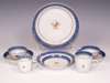 comprising: two coffee cups; four tea bowls; three saucers; and a small circular dish, decorated with an outer blue geometric border and a floral garland border surrounding a crest of a rampant lion facing left with motto NOBILIS . IRA to the well; together with matched coffee cup; two saucers; and two small dishes with similar decoration (15)