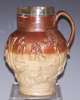 the mounts hallmarked but unclear, the body decorated in relief with typical scenes of horseman and hounds chasing a fox, a tavern scene and other figures
