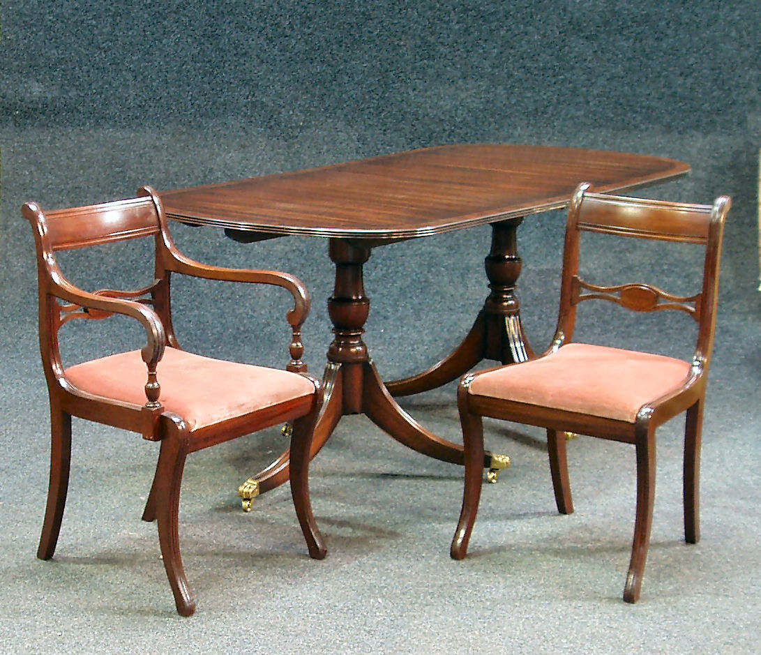 comprising a set of six Regency style dining chairs and a twin pedestal table [7]