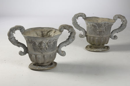 in the 17th century Baroque taste, the campana bodies with winged cherubs masks above gadrooned bowls flanked by acanthus cast S scroll handles, on moulded and leaf cast circular feet (4)