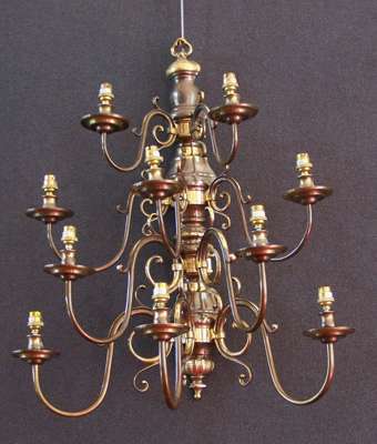 A pair of ten light brass wall sconces in the Dutch 18th century style