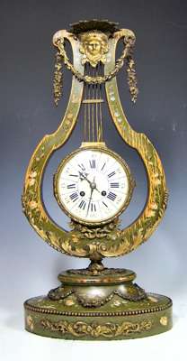 A 19th century French painted beech and giltmetal mounted 'lyre' clock