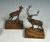 modelled as a red deer stag and a doe standing on a naturalistic carved onyx bases, signed to bodies 'John Casde'