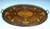 with inlaid marquetry design, with scallop shell centre surrounded by floral garlands and putti, with brass gallery and twin handles
