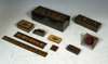 of rectangular form with typical coloured floral lid, marked to base 'T Barton, Tunbridge Ware Manufacture, Tunbridge Wells'; together with a collection of other Tunbridge items including a trinket box with geometric design, two rulers, a watch stand and various other small items (10)