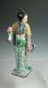 holding a flower, with polychrome floral decorated kimono, on a rectangular base