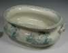 of oval form, with scroll handles, decorated with continental landscapes to well and sides, with a garlanded border to rim, 54cm wide; with a Copeland & Garrett foot bath of oval design, with borders of orange, green and gilt and foliate decoration; with another oval foot bath, with floral decoration, 48cm wide (3)