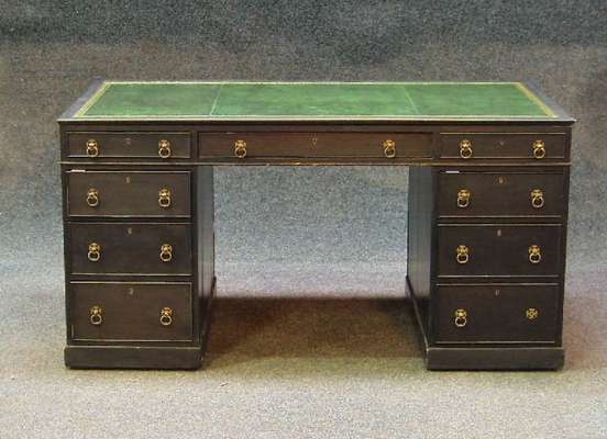 A black painted twin pedestal desk