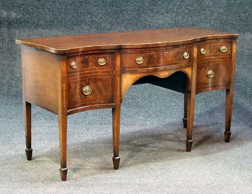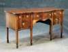 with single frieze drawer over a shaped apron flanked by a deep drawers and a cupboard, raised on square tapering legs with spade feet