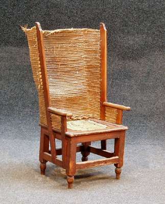 the reeded back over out stretched arms, raised on square legs, turned feet, united by stretchers
