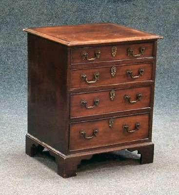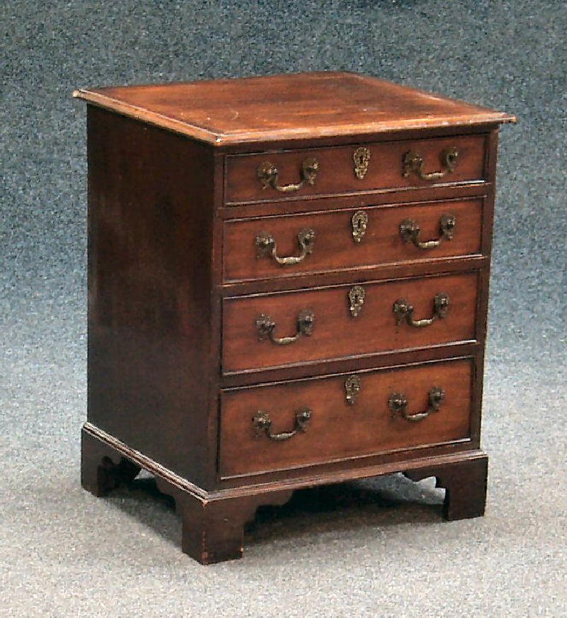 the moulded rectangular top over four graduated long drawers, raised on brackets