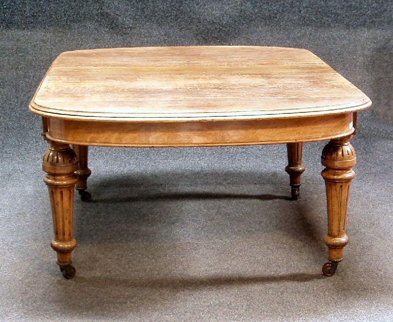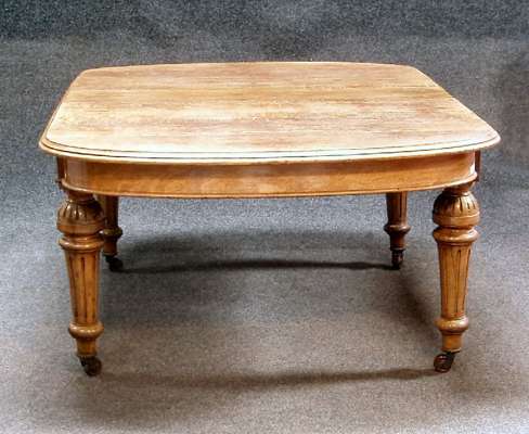 the moulded top with rounded corners over plain frieze raised on fluted baluster turned legs, ceramic castors including four additional leaves