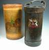 of cylindrical form, with a swing handle, and coat of arms, 50cm high; with a stick stand, of oval form, decorated with a picture of a horseman, 52cm high (2)