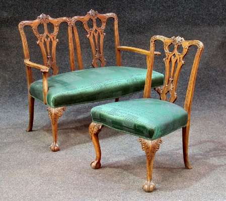 A mahogany Chippendale style settee and chair