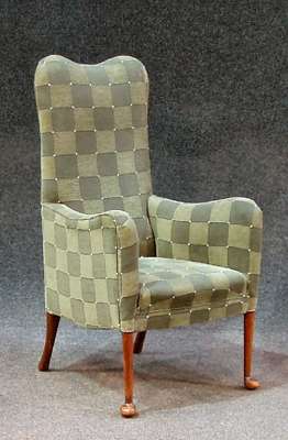 the cushioned high serpentine back over out stretched arms and cushioned seat, raised on tapering turned legs with bun feet