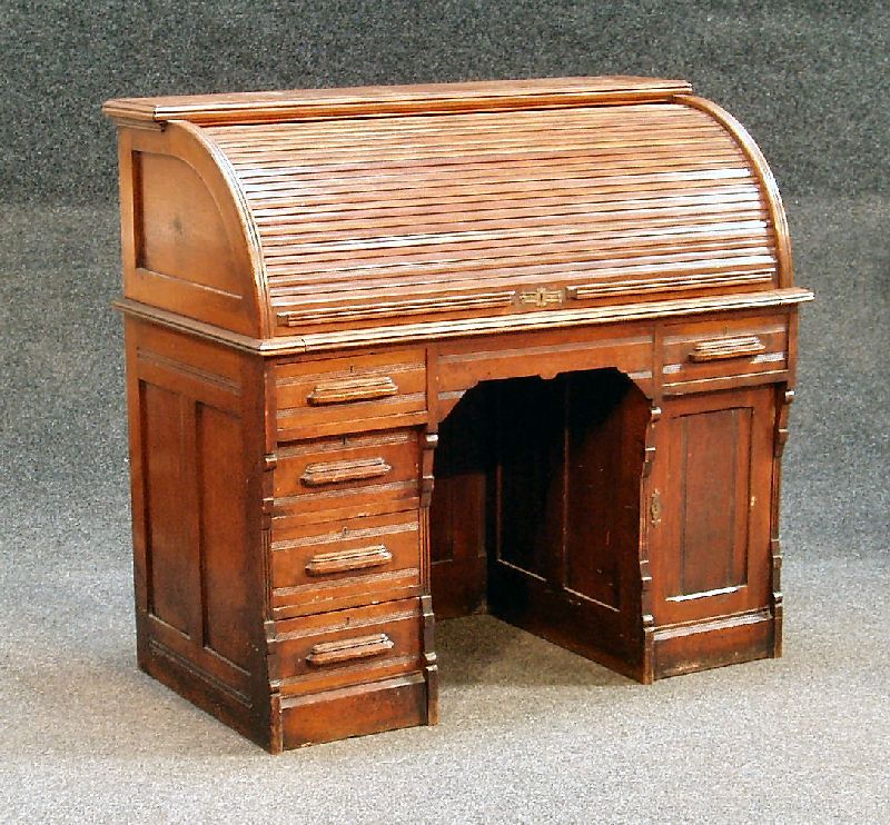 A late Victorian oak roll top desk