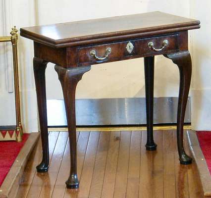 the rectangular top over a frieze drawers, raised on cabriole legs bun feet