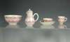 comprising: two tea cups and saucers, two coffee cups, a sugar bowl, and sparrowbeak jug and cover, with moulded lotus pattern (8)