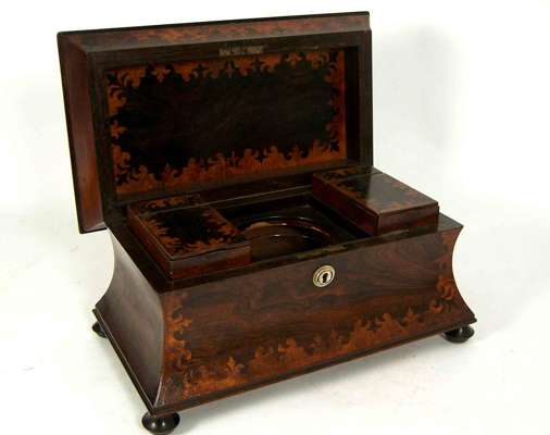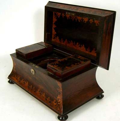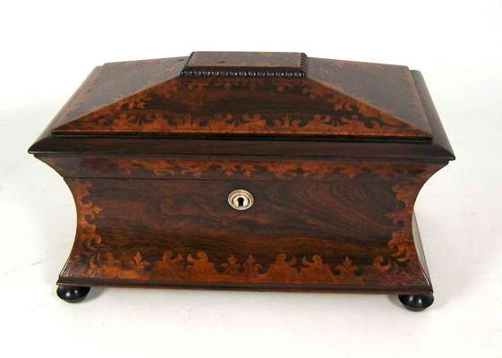 A Victorian rosewood and burr walnut tea caddy