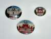 each on ivory, all of oval form, of Islamic buildings, one of a white mosque, 3cm x 4cm; another similar one in white, 2.5cm x 3cm; and a red palace, 3cm x 4cm (3)