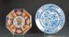 with floral border, the well decorated with a vase of flowers, bamboo and blossom, 32cm diameter; an octagonal Imari charger with opposing panels of red and blue floral decoration with gilt detail, 26cm wide (2)