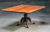 the moulded rectangular top above lobed turned support on foliate carved downswept quadraped legs terminating in acanthus carved C-scrolls, ceramic castors