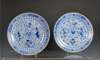 each with scalloped rim and flower head border, the well decorated with fish and central design of a crab (2)