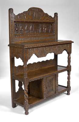 A Victorian oak 'marriage' buffet carved in the 16th century manner